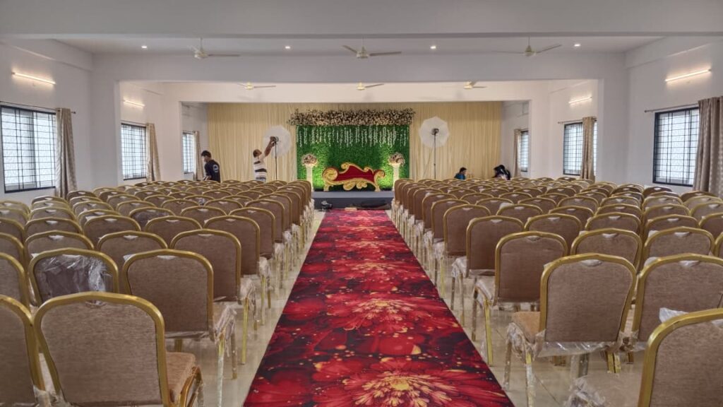 Sahyadri Sabhangana and Rooms in Shivamogga offers the perfect blend of celebration and comfort under one roof. Our elegant function hall provides a warm and welcoming space for weddings, engagements, naming ceremonies, birthdays, baby showers, corporate gatherings and more. Along with the event hall, we offer well-appointed AC rooms to ensure your guests enjoy a relaxed and comfortable stay.